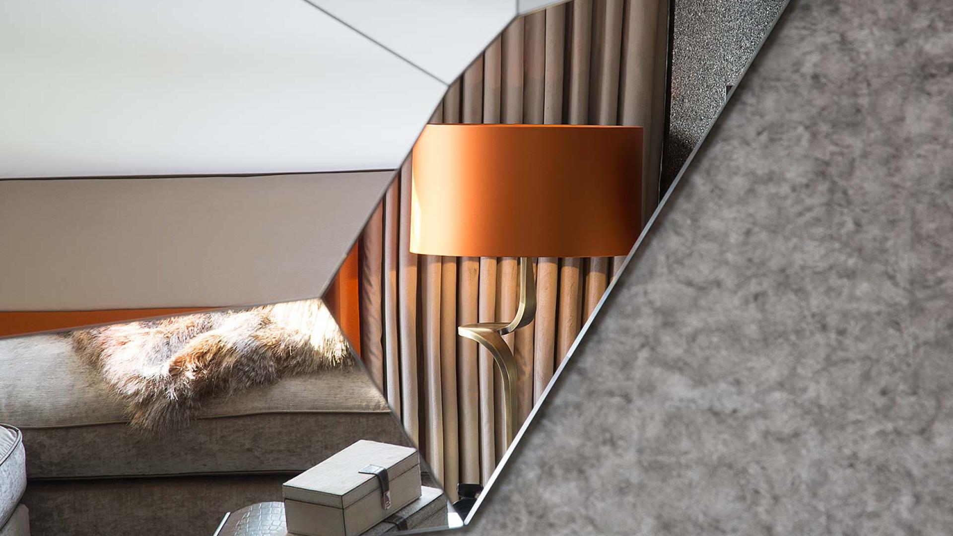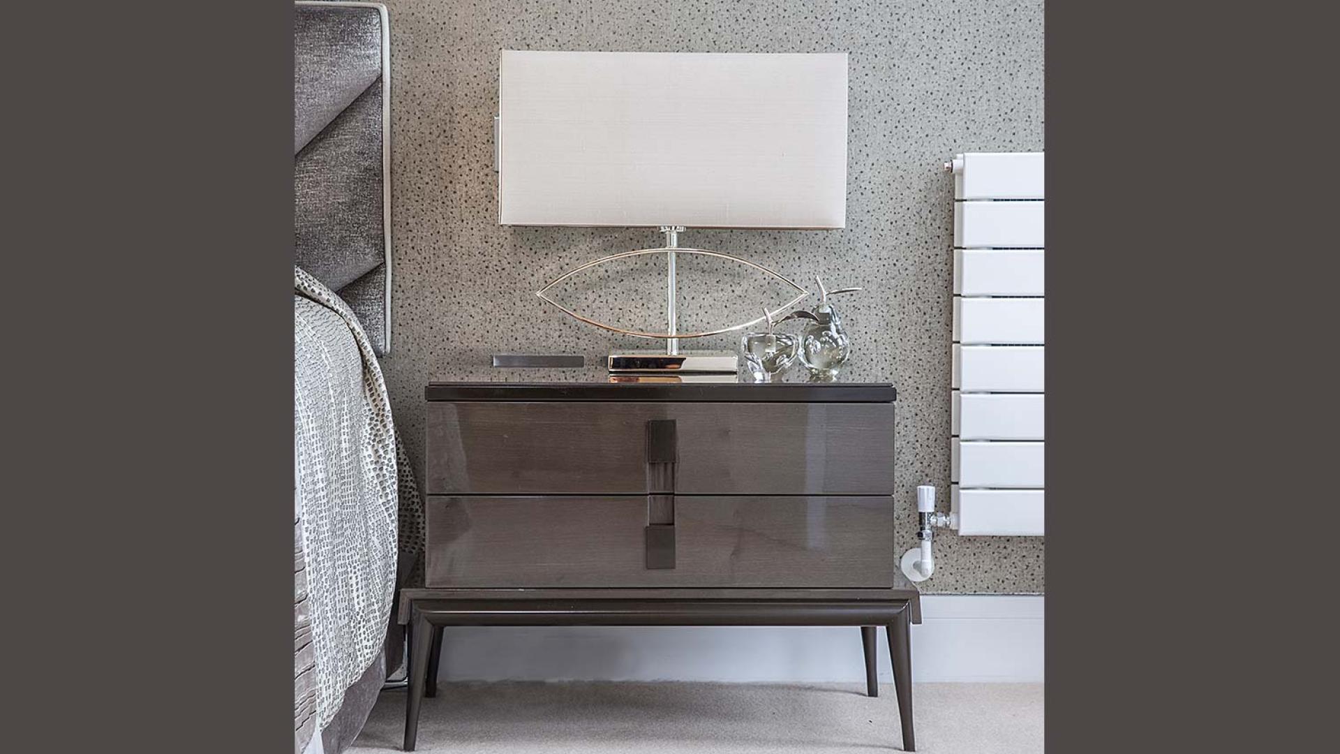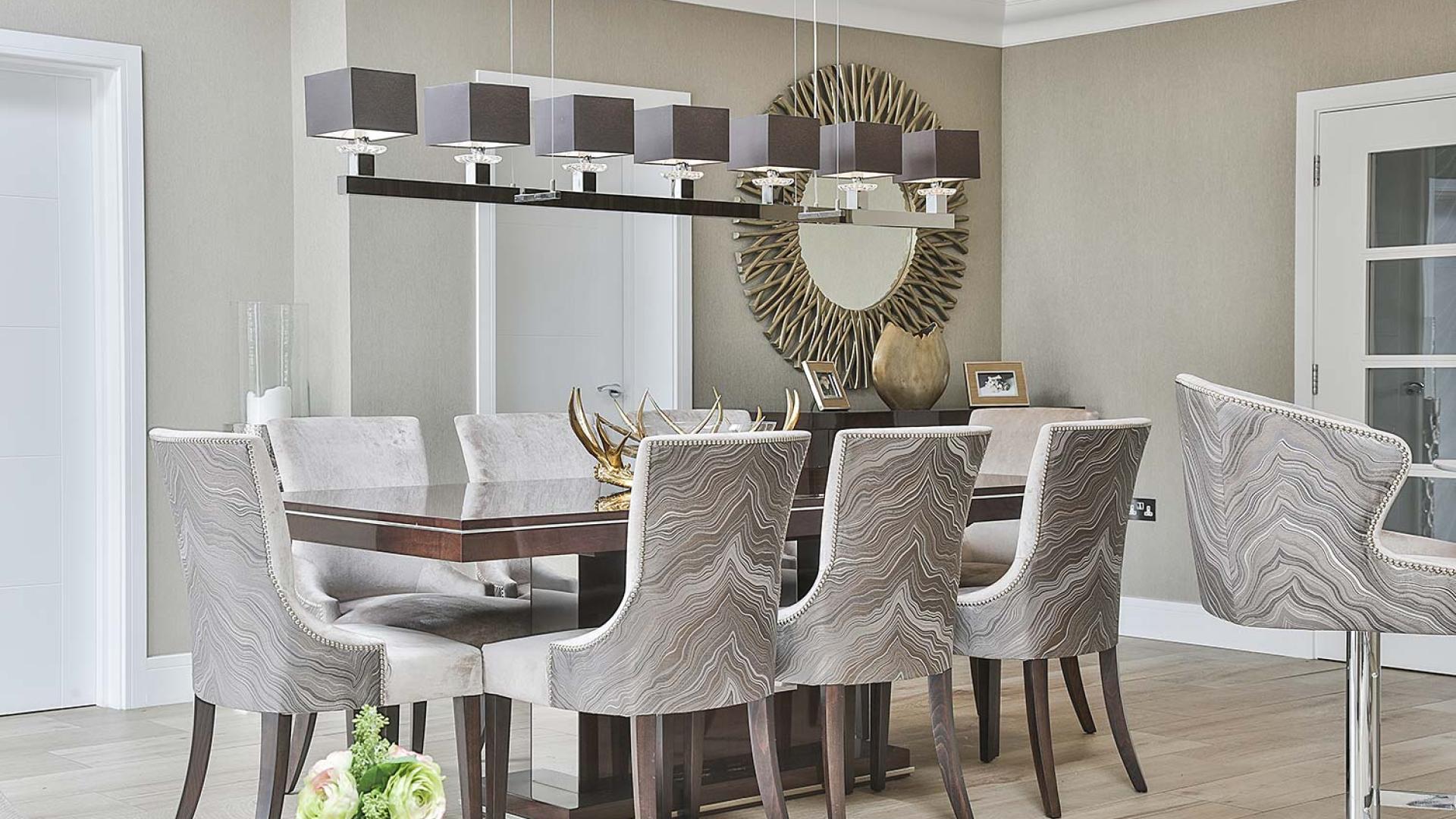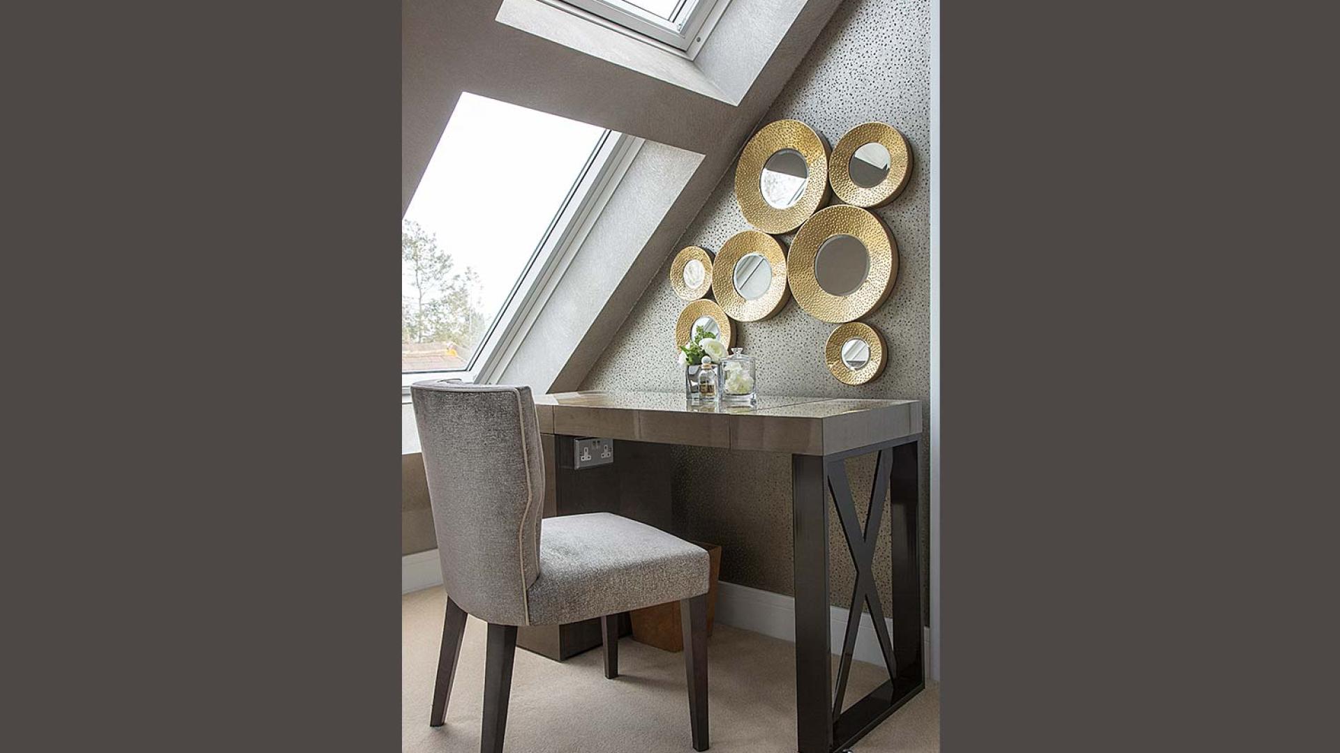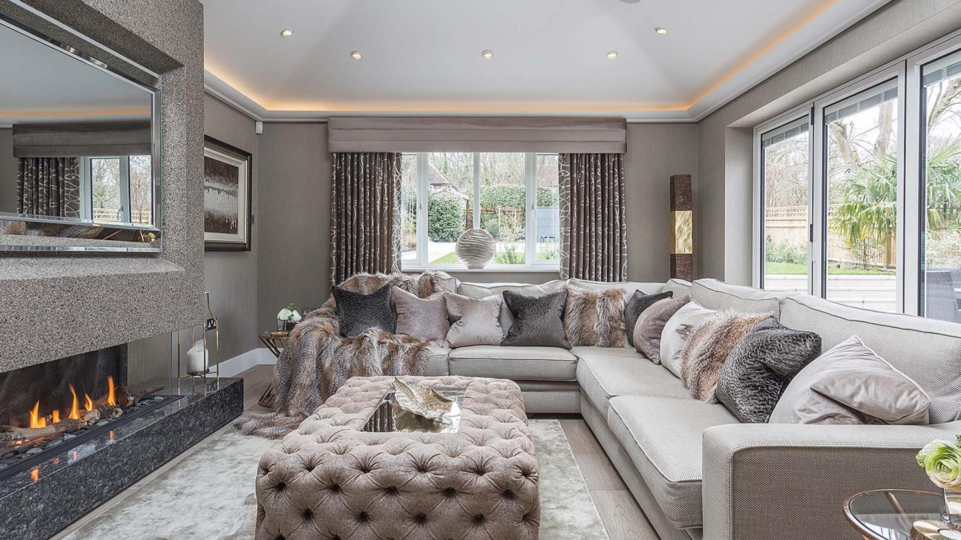 At the heart of the project is the stunning Kitchen/Diner, with bespoke Kitchen designed and created in conjunction with fine-furniture manufacturer Stoneham Kitchens, which incorporates tinted mirror doors and walnut inlay detailing. The showstopper of the project is the complex bespoke fireplace designed to fit the custom-made mirror TV and 3-sided linear gas fire.