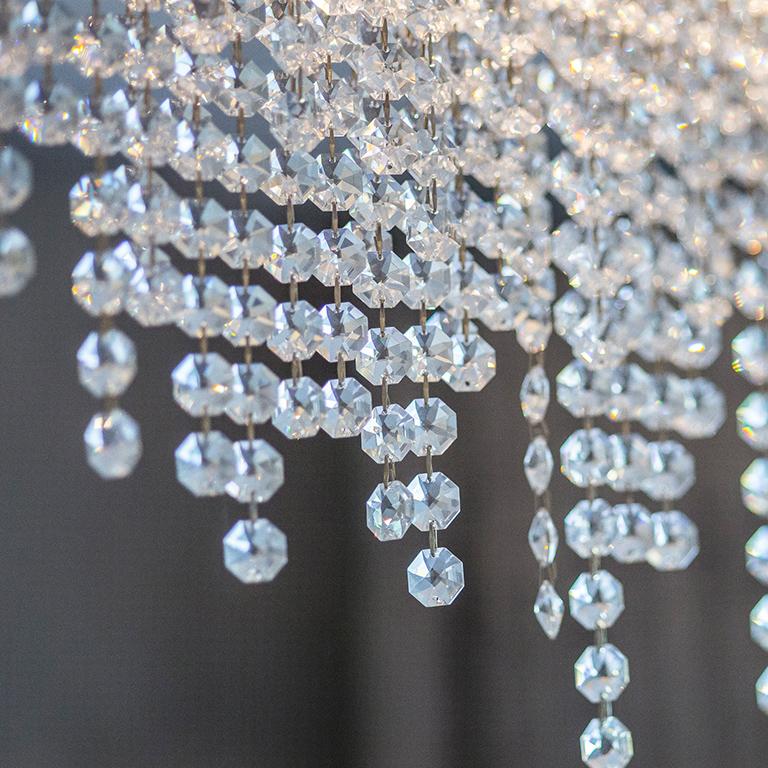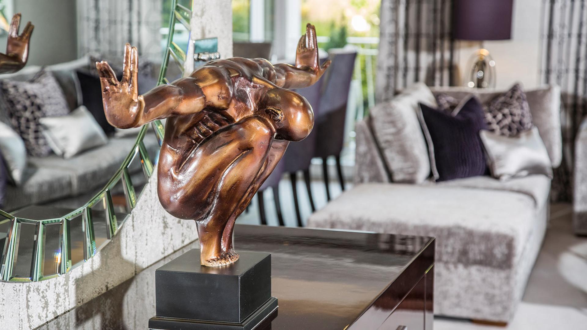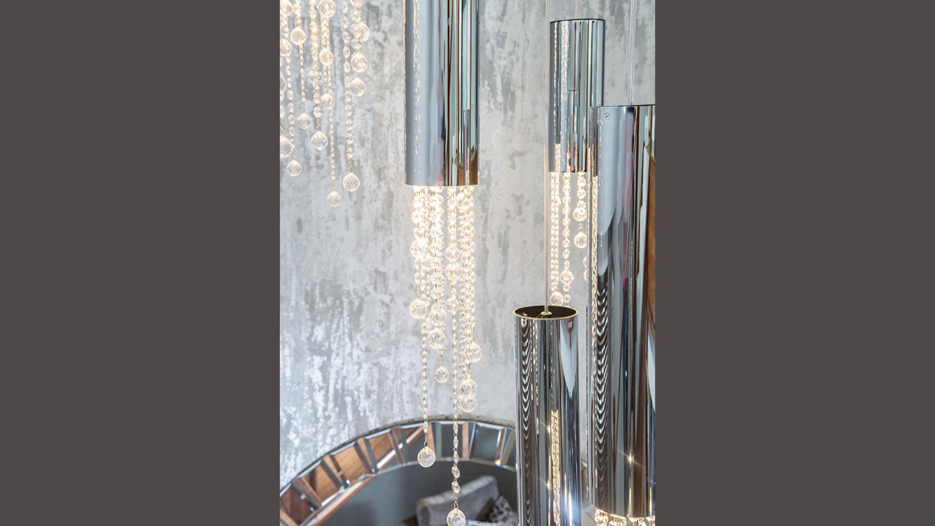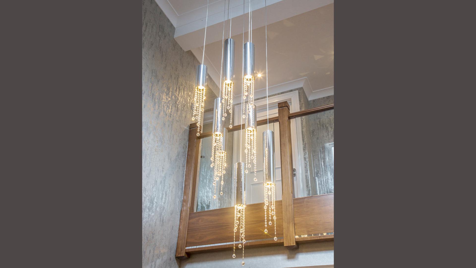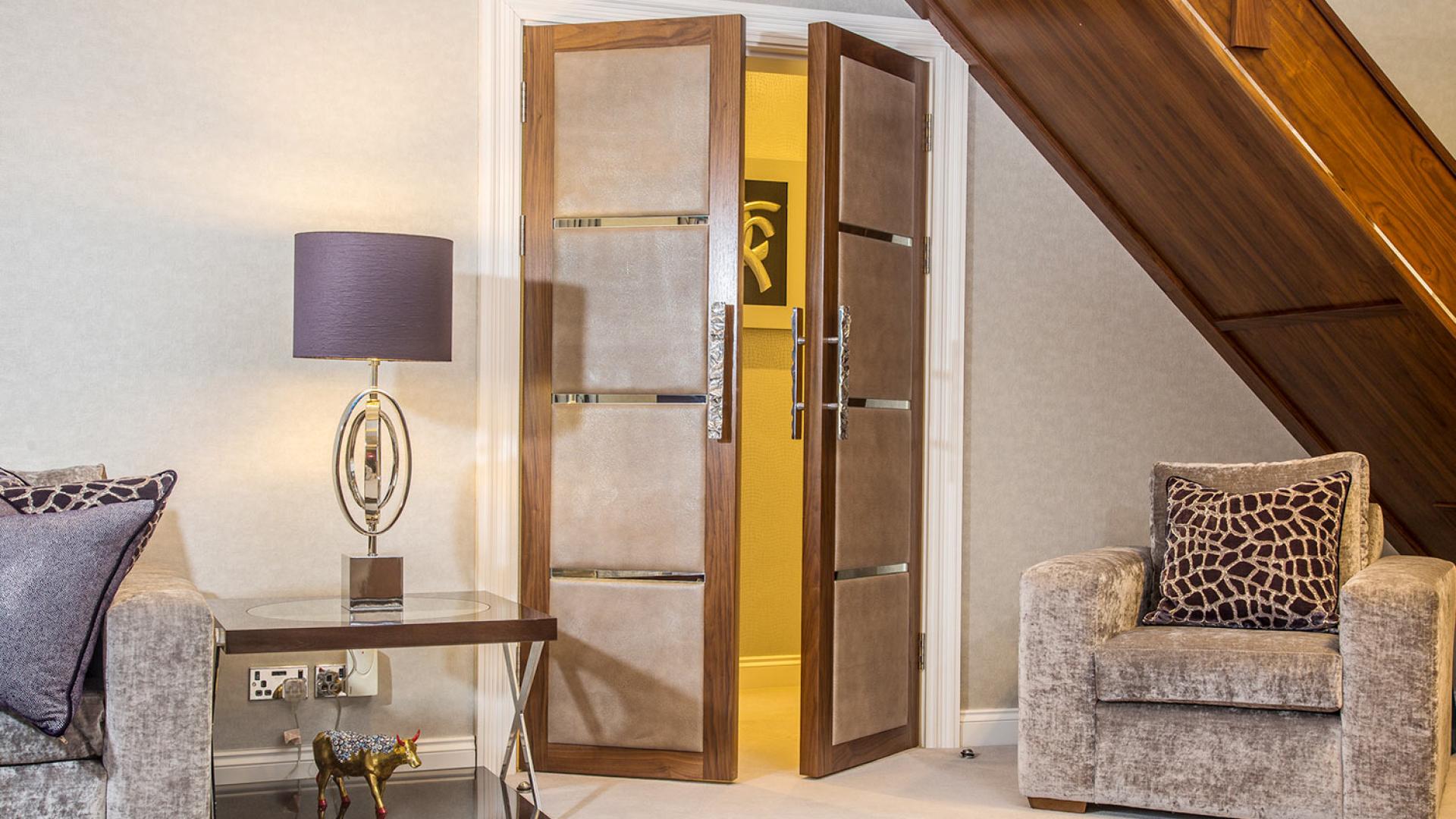 They wanted to create a look that was both effortless and elegant but also individual. We used a neutral pallet of greys with an accent of purple to create this design; the unusual wallpaper provides a dramatic yet stunning backdrop to the scheme.