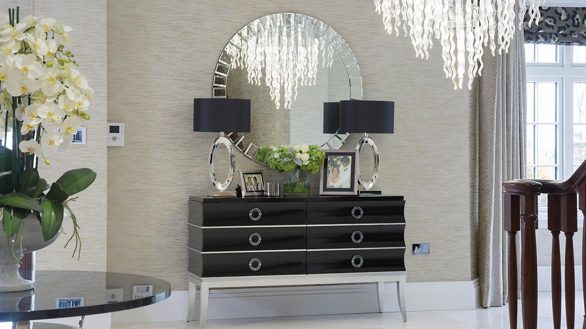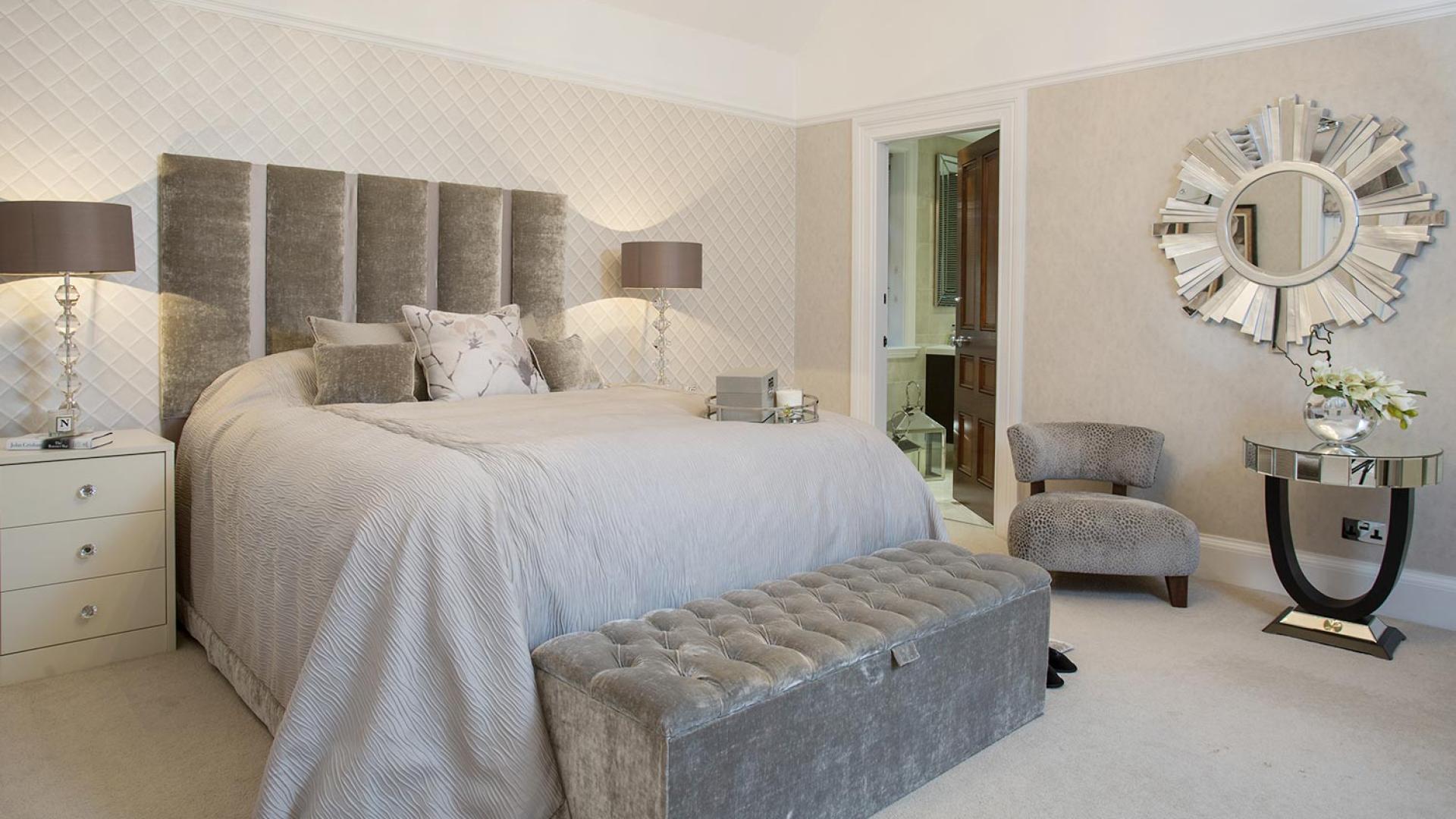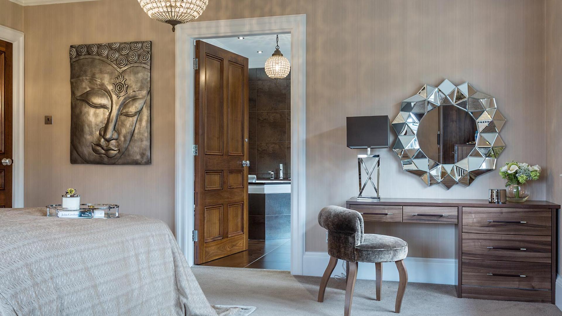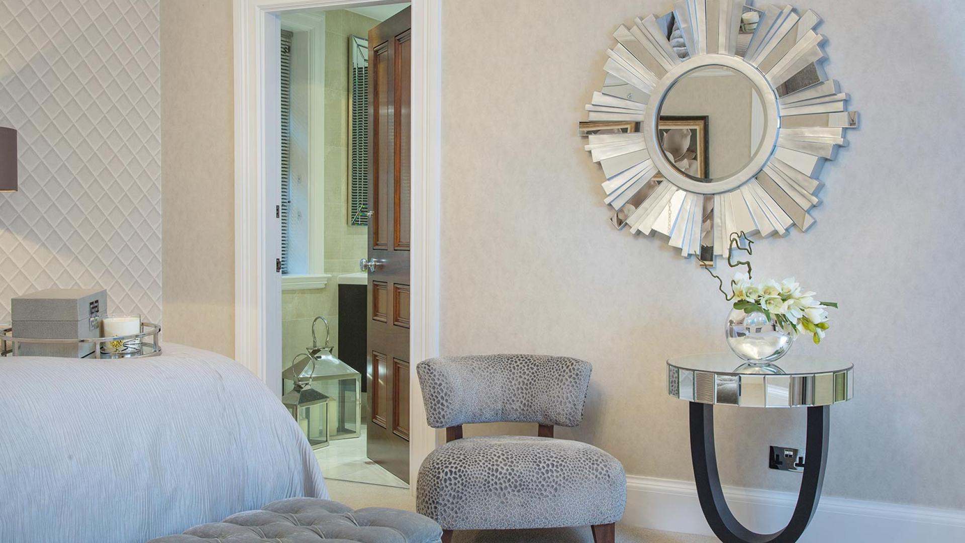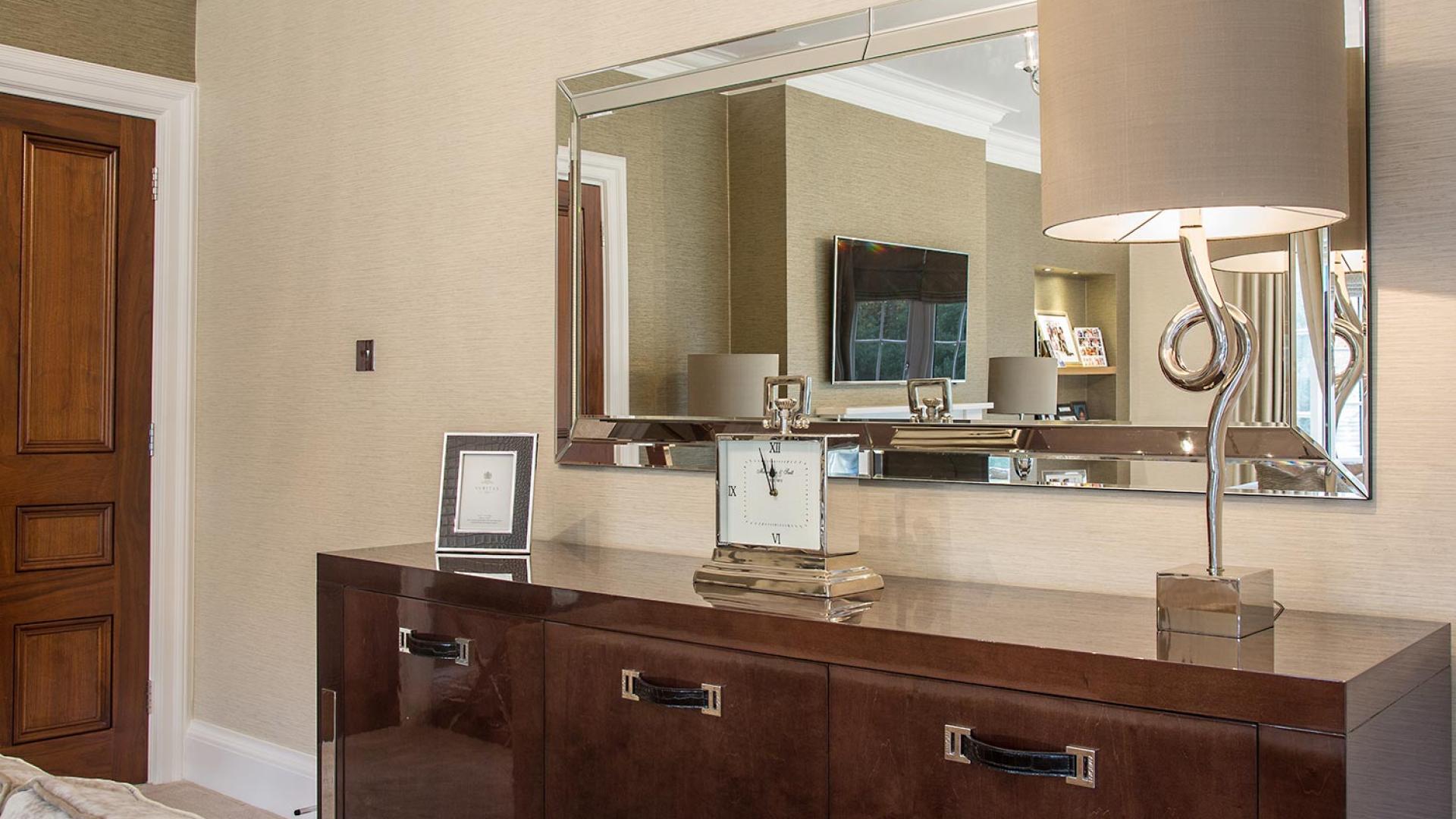 The project was implemented across a number of phases and included a set of stunning chandeliers, with the largest taking centre stage in the galleried landing. We gave each of the 5 bedrooms its own personality, from the relaxing suite for guests to enjoy, to a princess-inspired bedroom for the youngest member of the family. We are particularly proud of the bespoke joinery designed and fitted in the Master Dressing Room and Orangery, which both include exquisite mirror inlay detailing and beautiful fabric panelling.