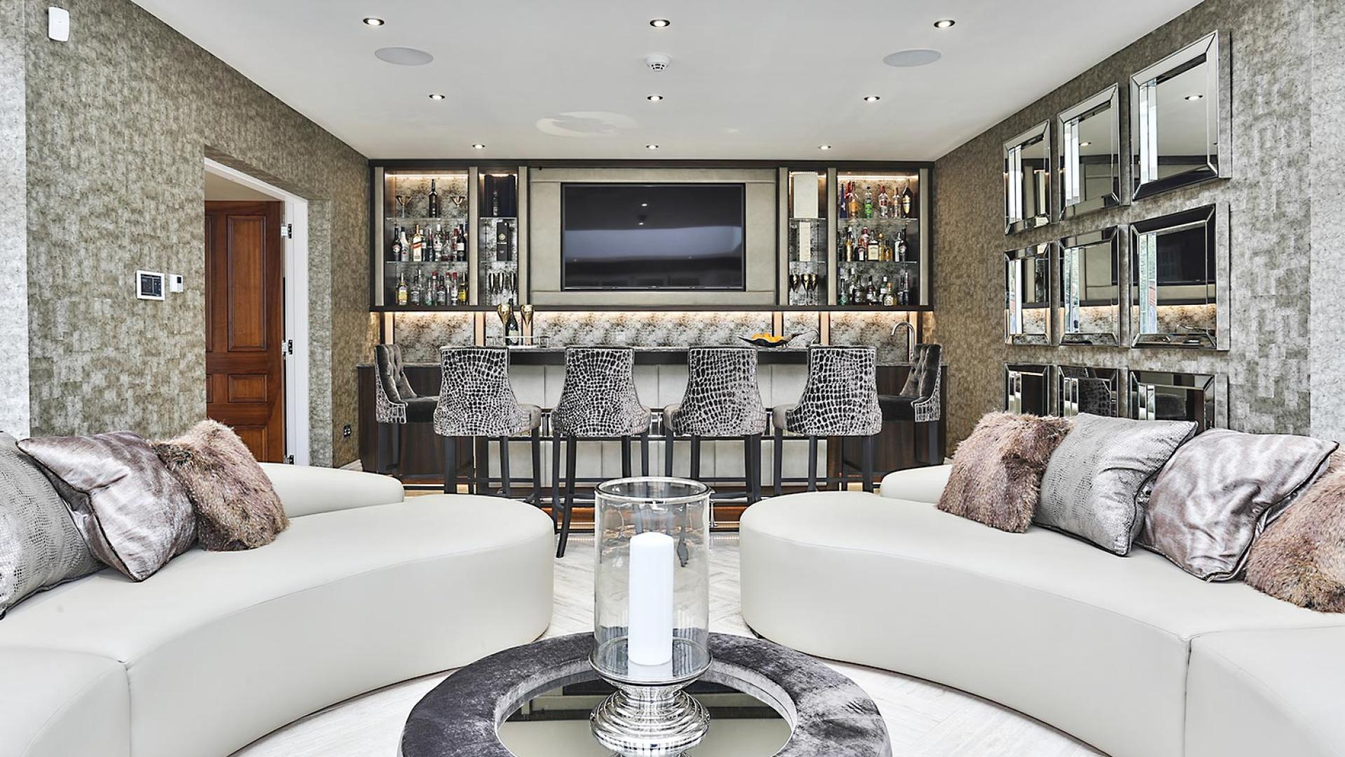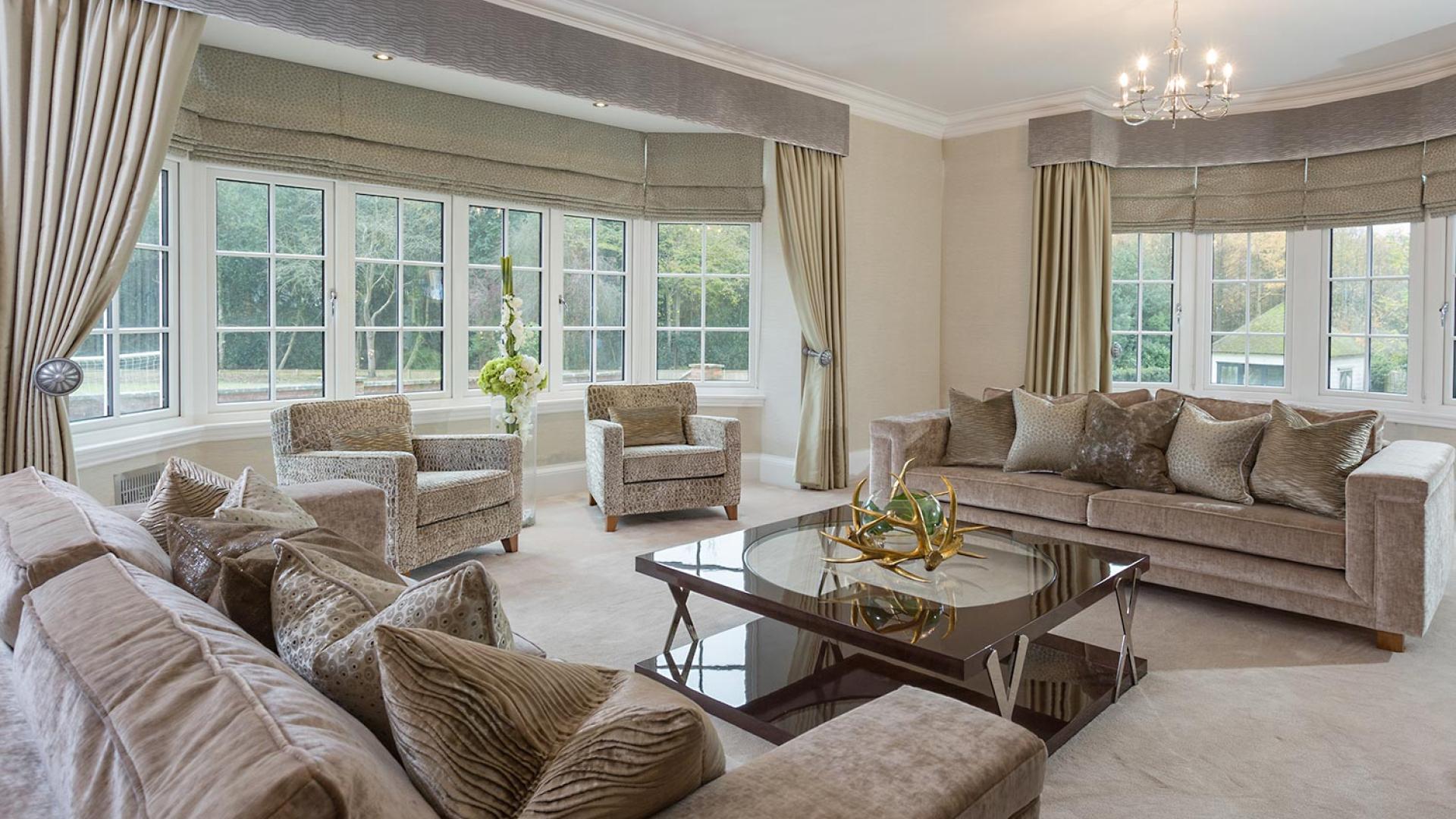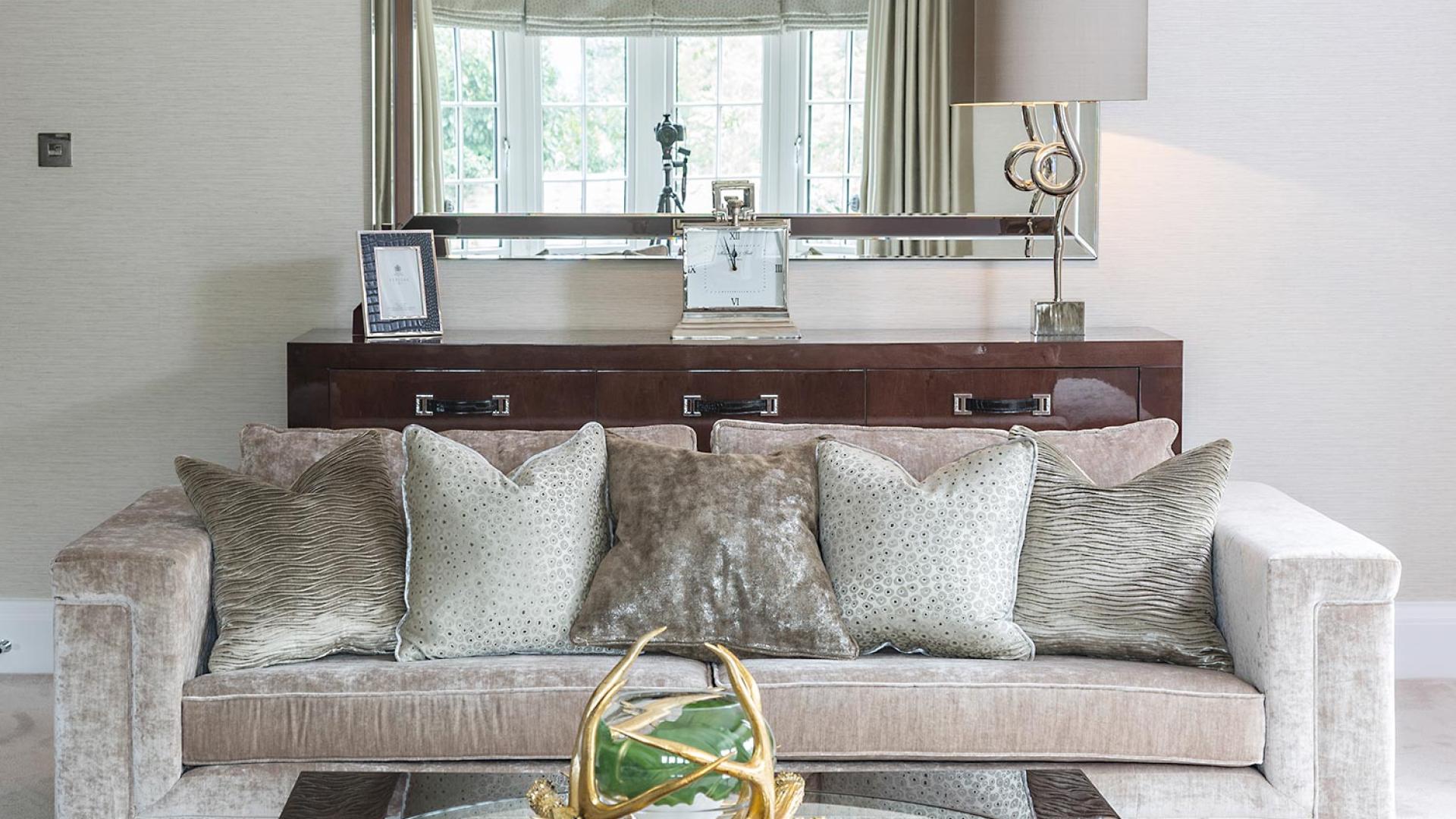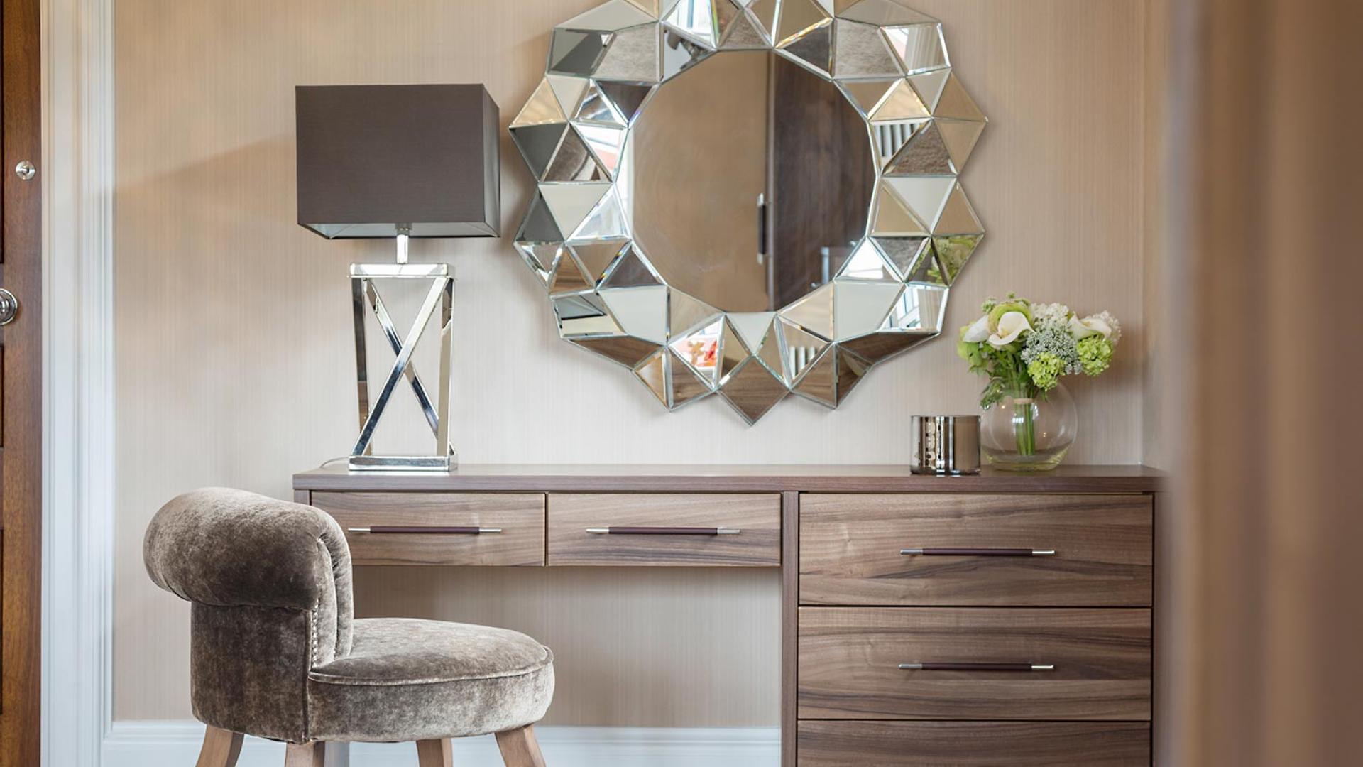 The project was implemented across a number of phases and included a set of stunning chandeliers, with the largest taking centre stage in the galleried landing. We gave each of the 5 bedrooms its own personality, from the relaxing suite for guests to enjoy, to a princess-inspired bedroom for the youngest member of the family. We are particularly proud of the bespoke joinery designed and fitted in the Master Dressing Room and Orangery, which both include exquisite mirror inlay detailing and beautiful fabric panelling.
