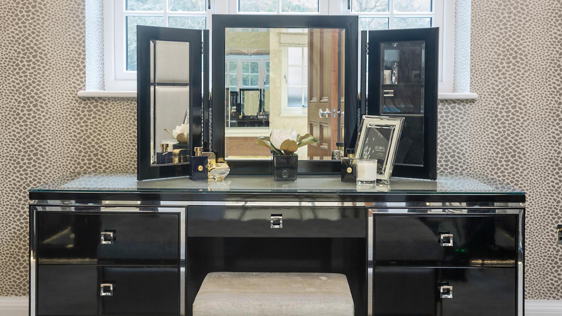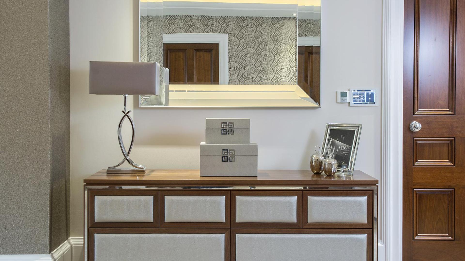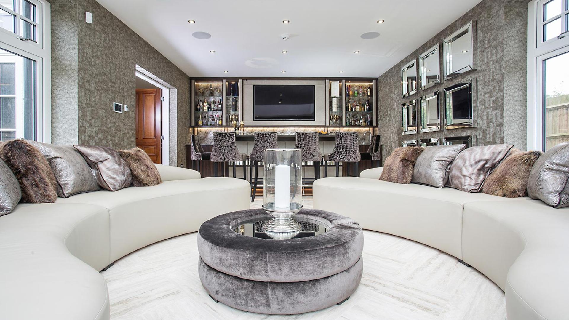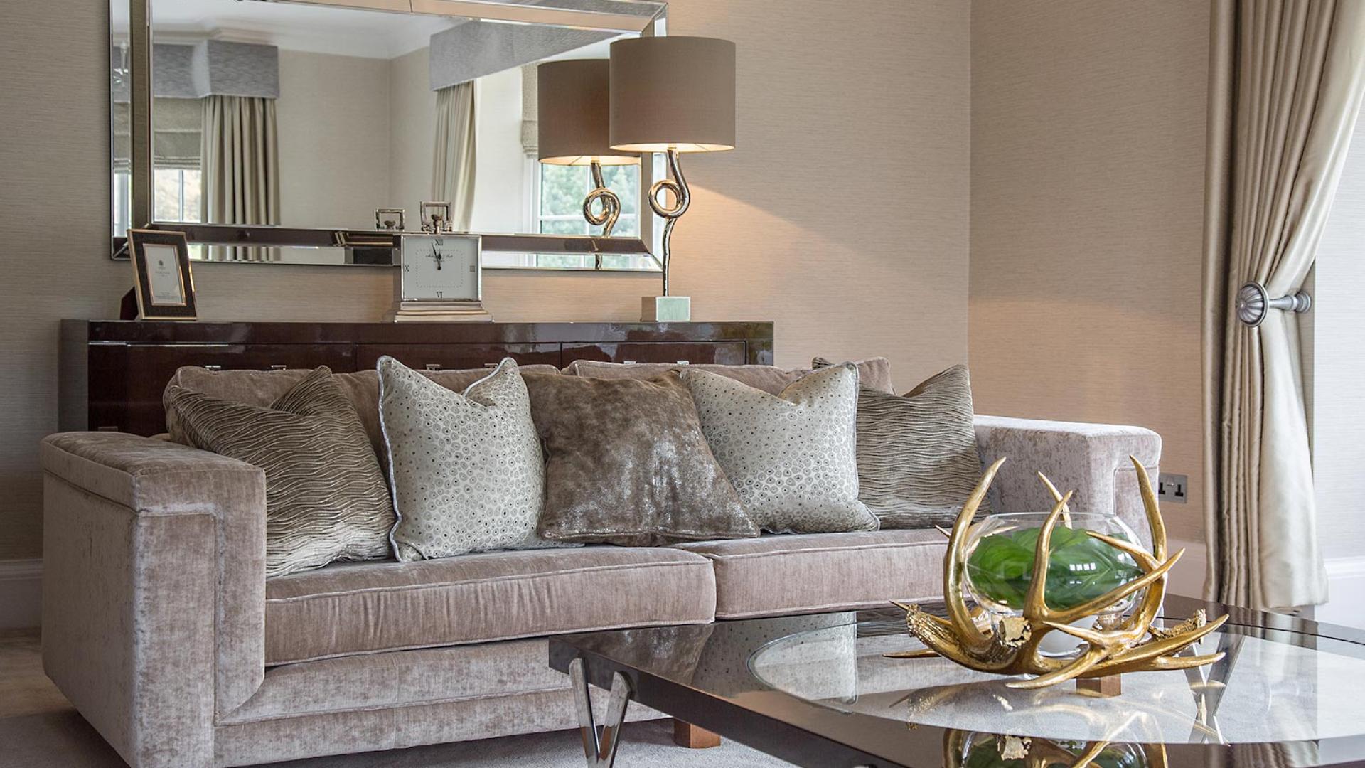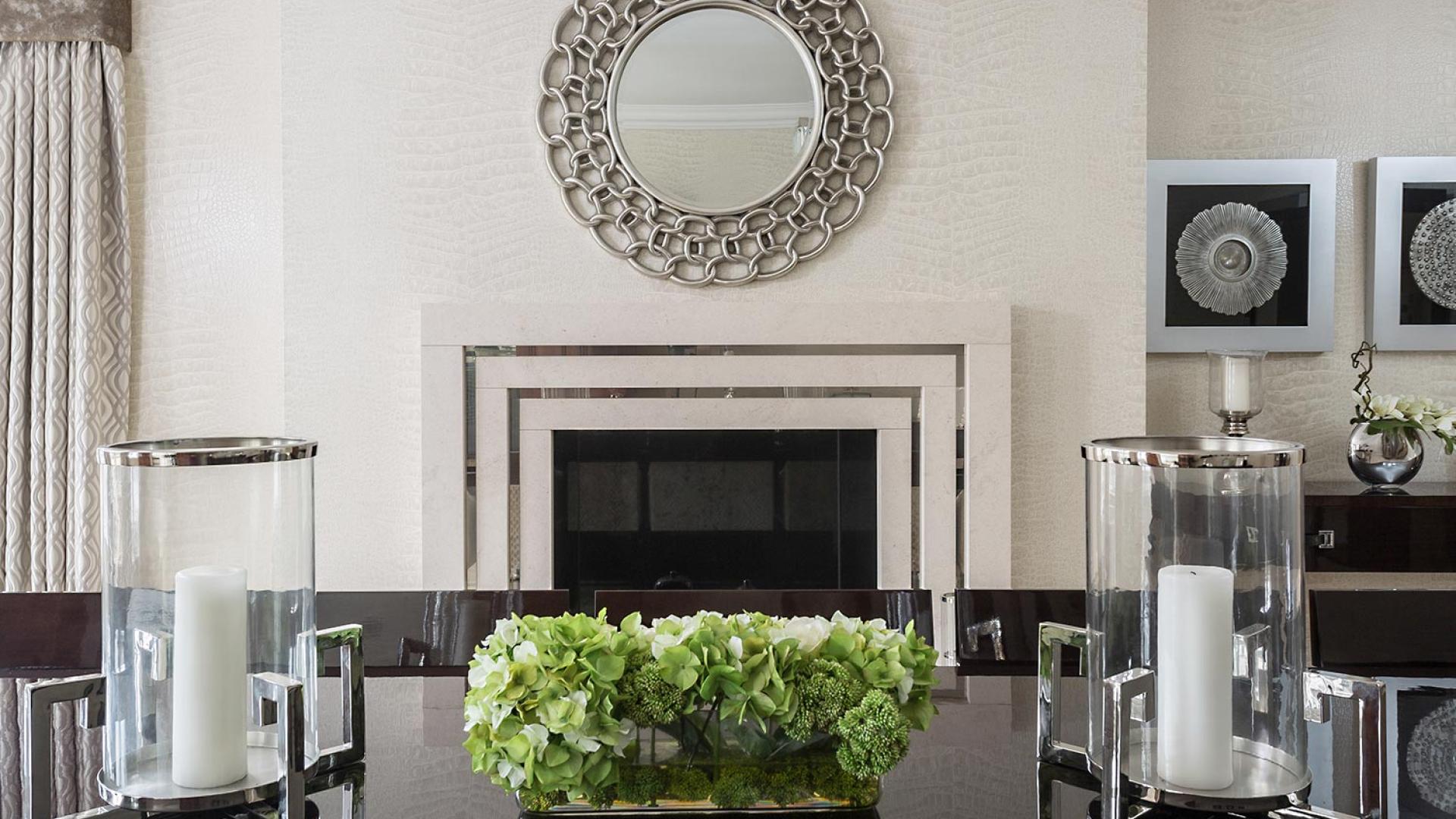 The project was implemented across a number of phases and included a set of stunning chandeliers, with the largest taking centre stage in the galleried landing. We gave each of the 5 bedrooms its own personality, from the relaxing suite for guests to enjoy, to a princess-inspired bedroom for the youngest member of the family. We are particularly proud of the bespoke joinery designed and fitted in the Master Dressing Room and Orangery, which both include exquisite mirror inlay detailing and beautiful fabric panelling.