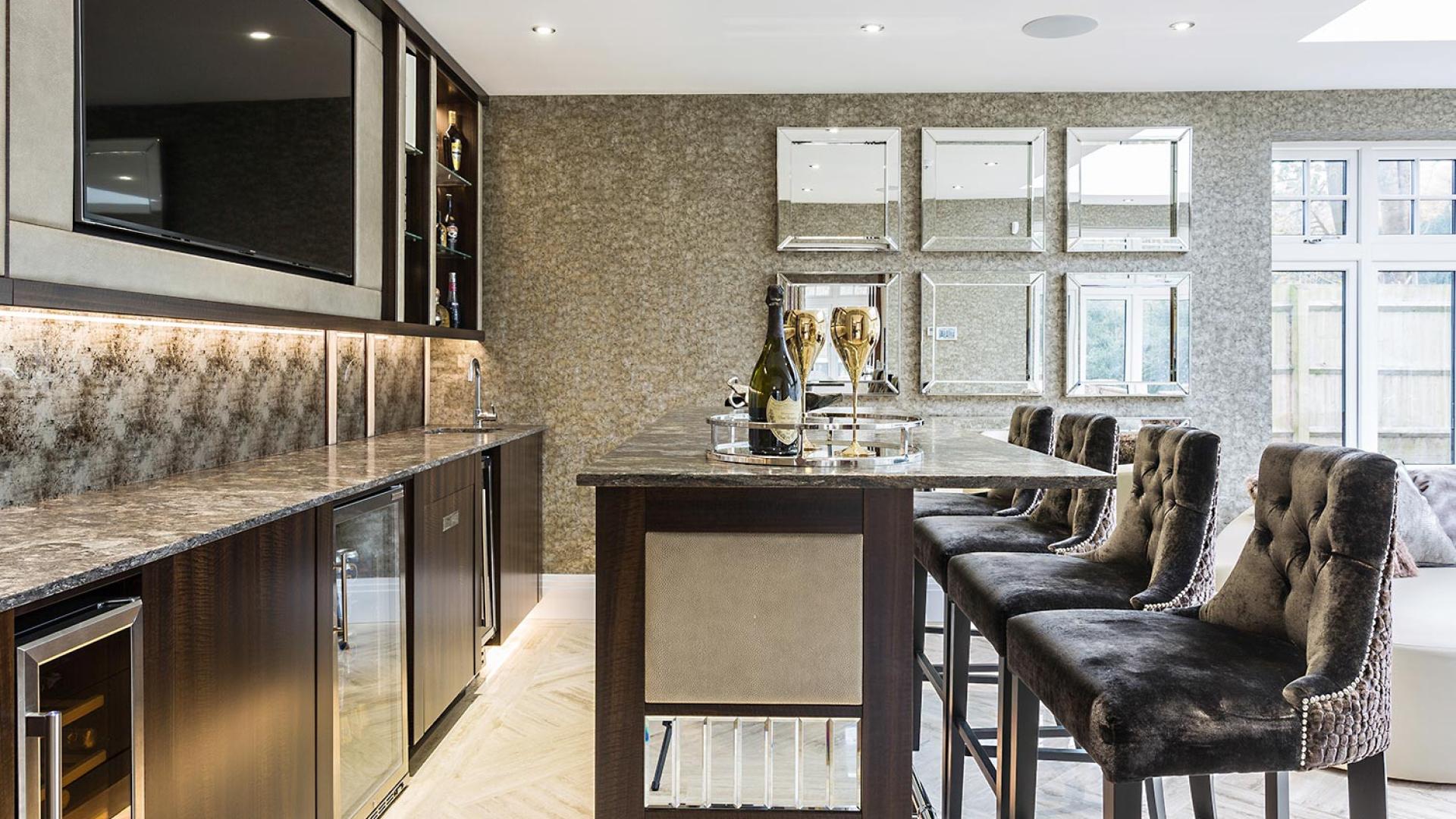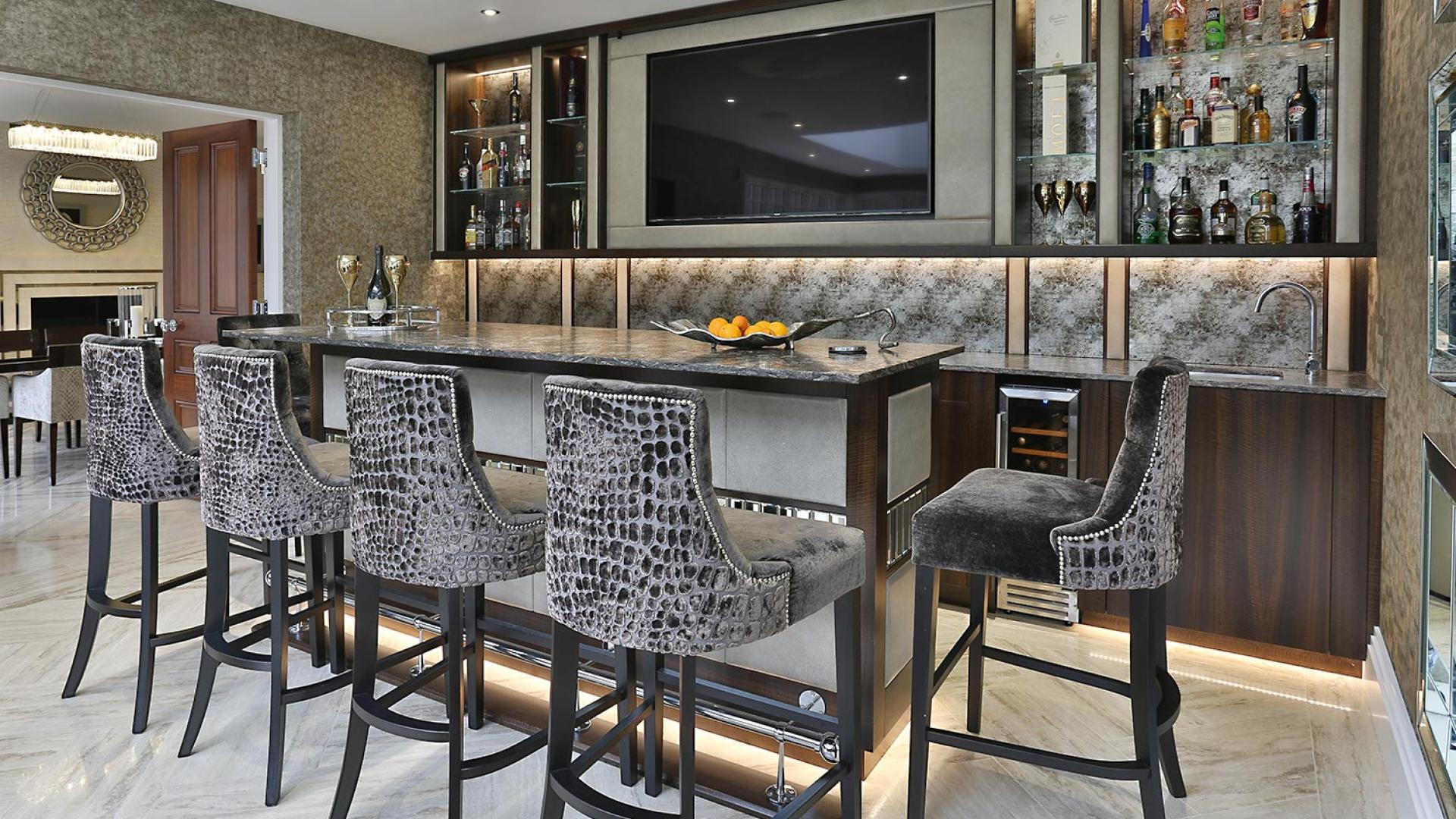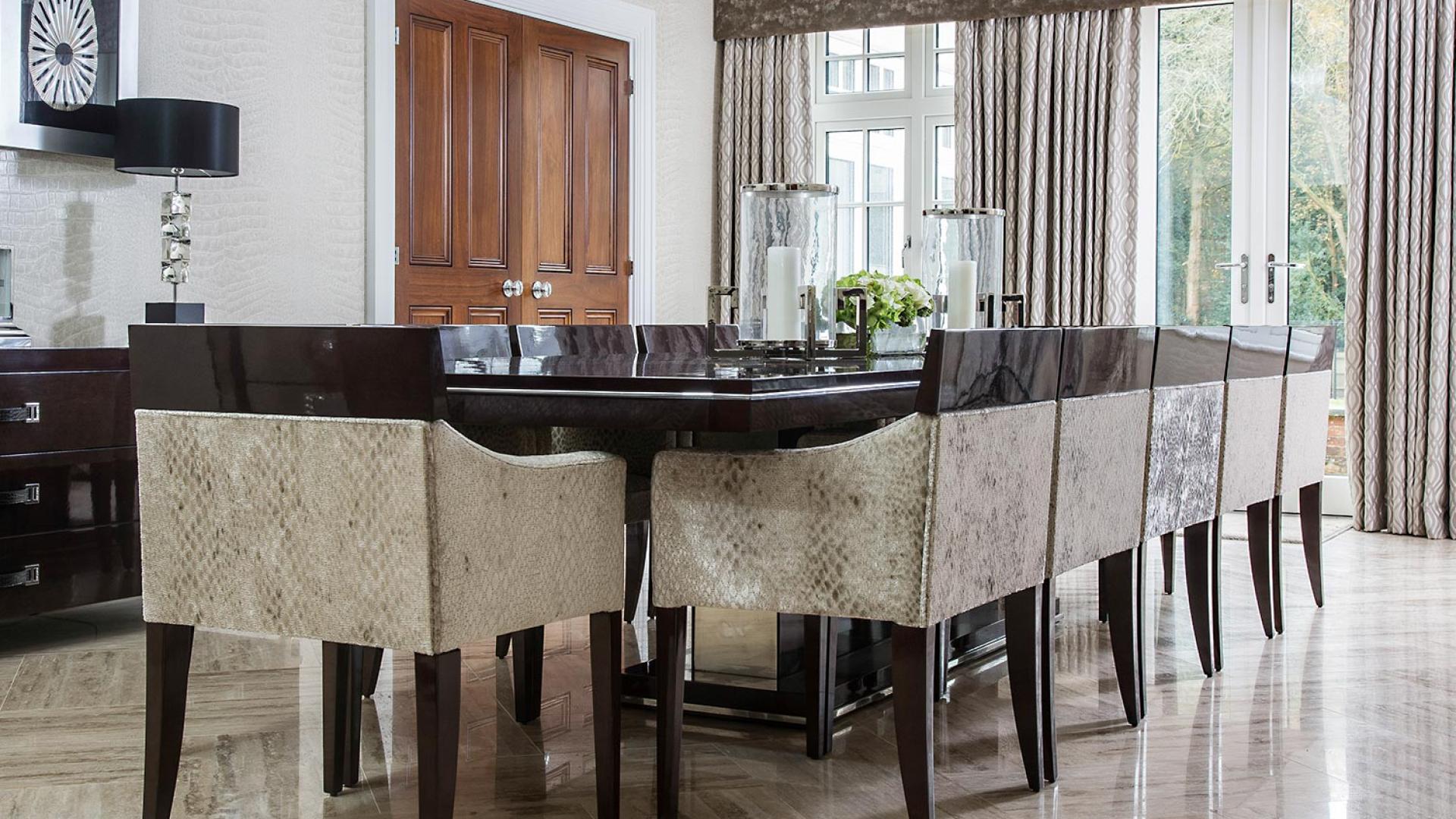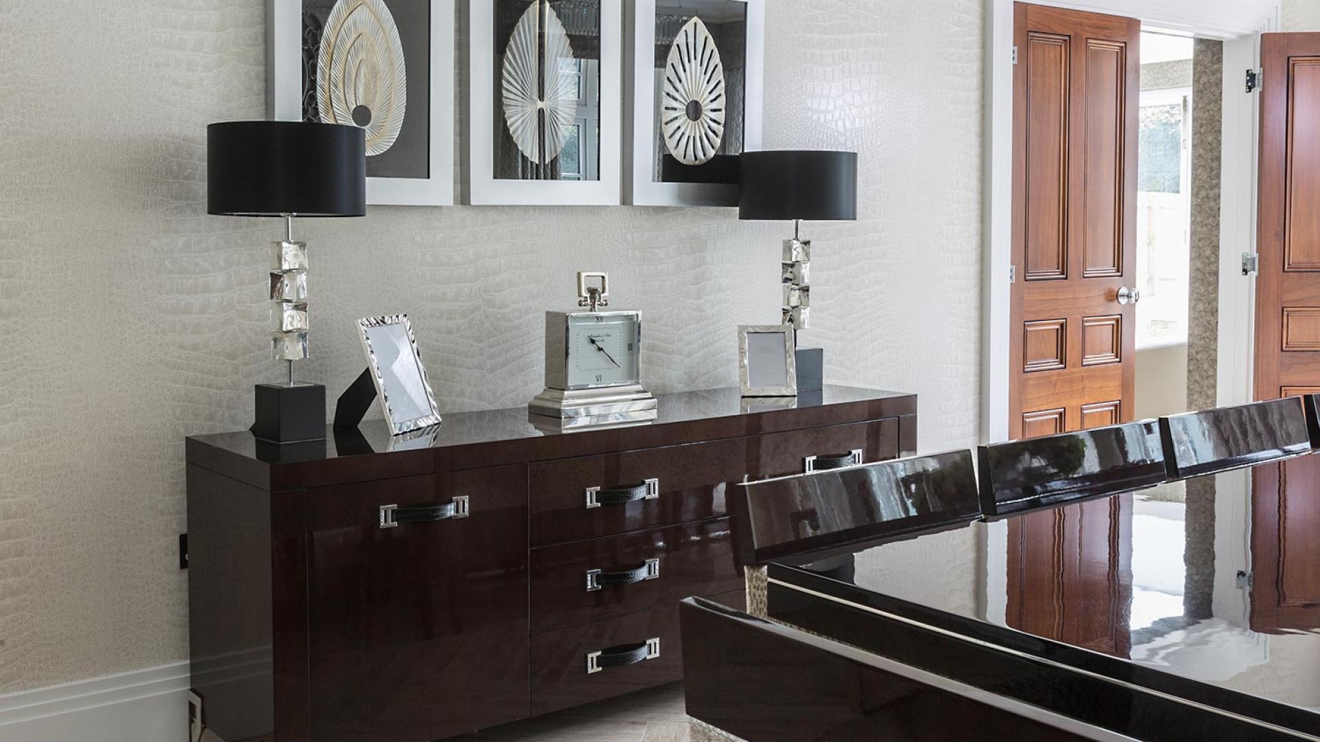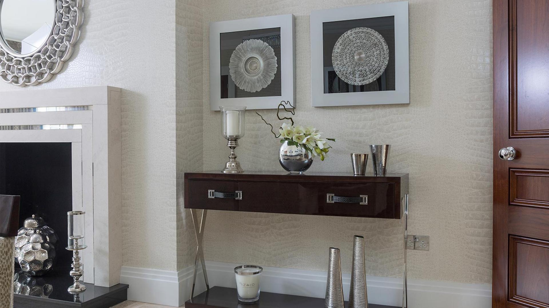 The project was implemented across a number of phases and included a set of stunning chandeliers, with the largest taking centre stage in the galleried landing. We gave each of the 5 bedrooms its own personality, from the relaxing suite for guests to enjoy, to a princess-inspired bedroom for the youngest member of the family. We are particularly proud of the bespoke joinery designed and fitted in the Master Dressing Room and Orangery, which both include exquisite mirror inlay detailing and beautiful fabric panelling.