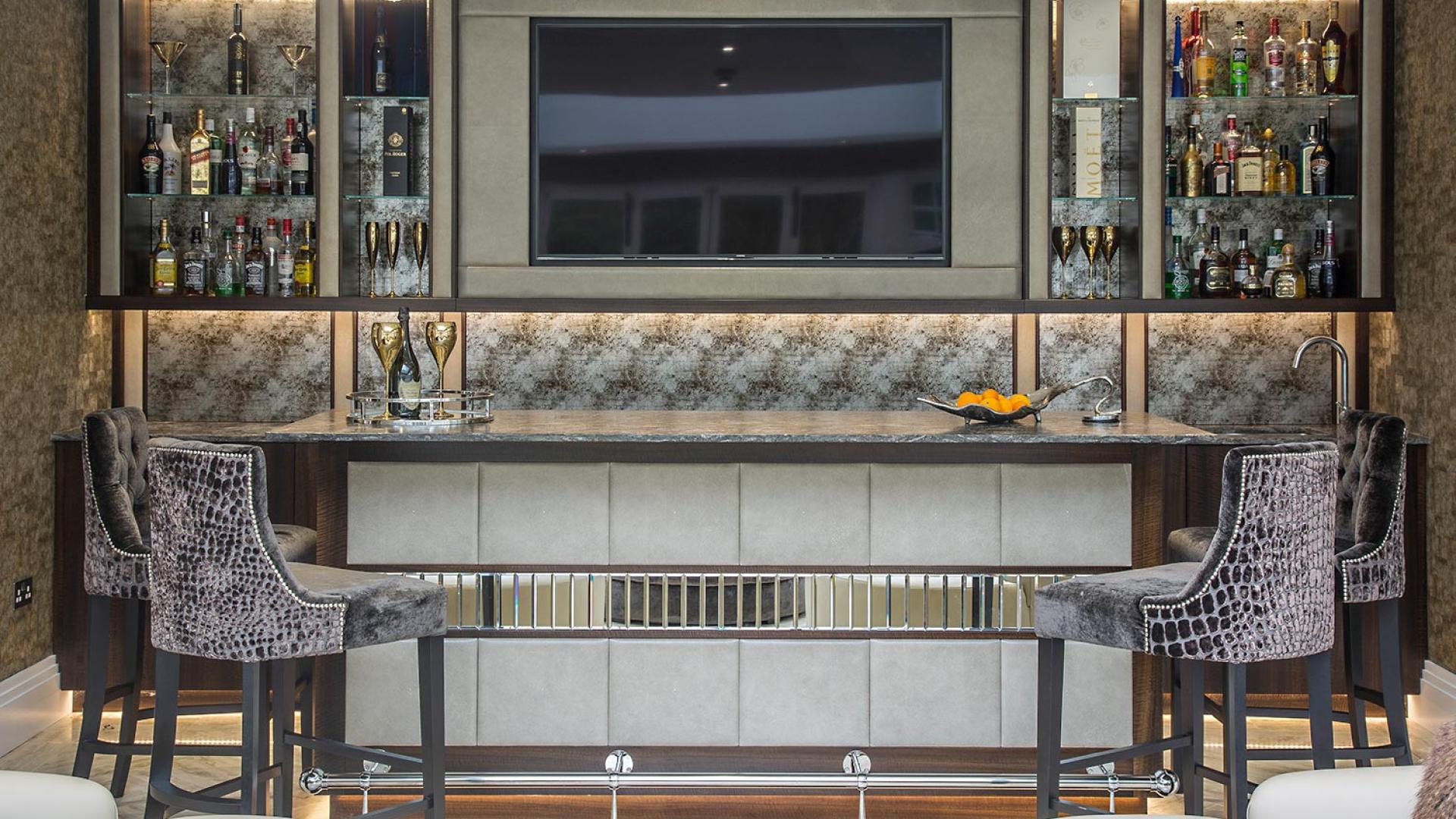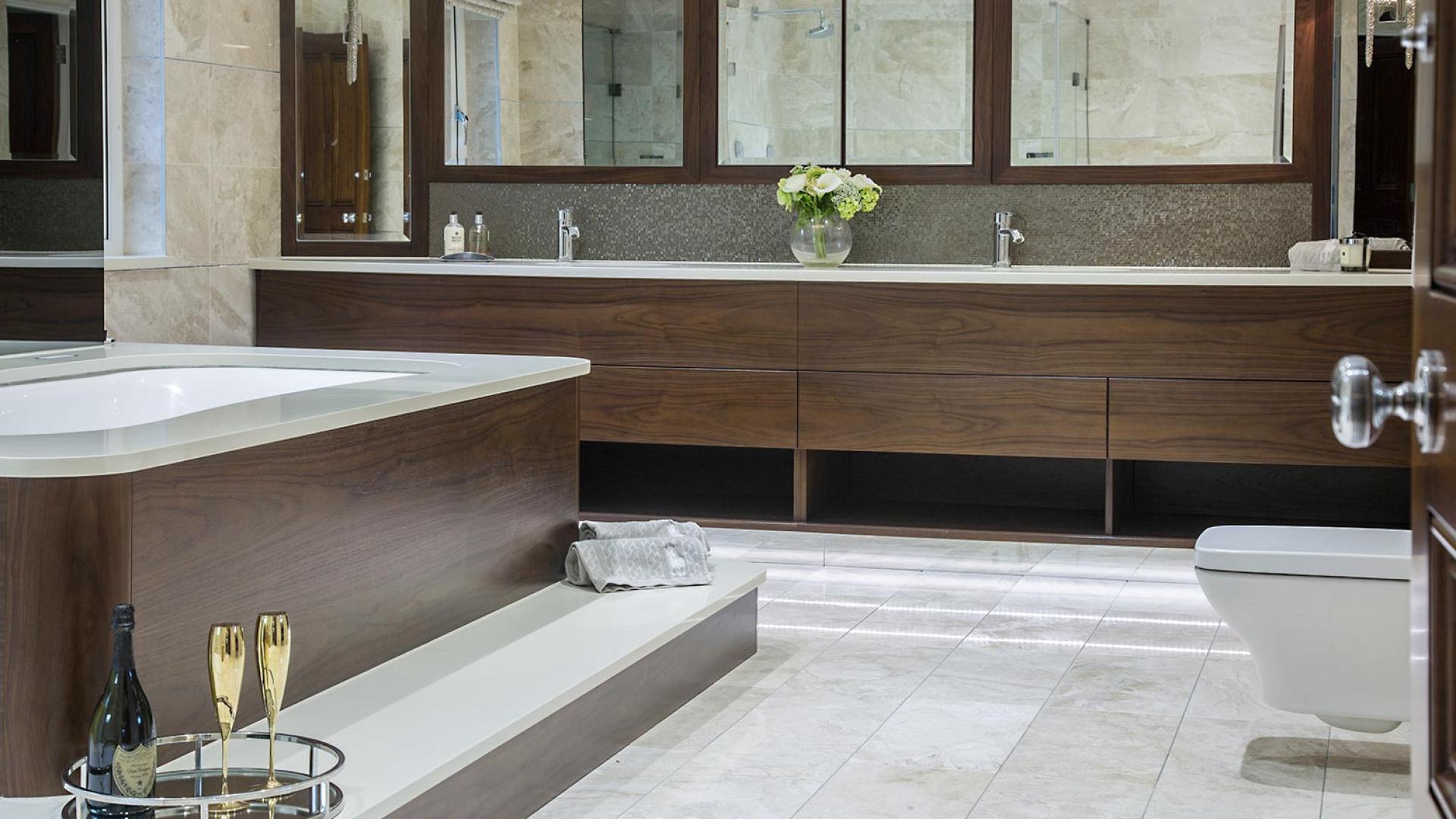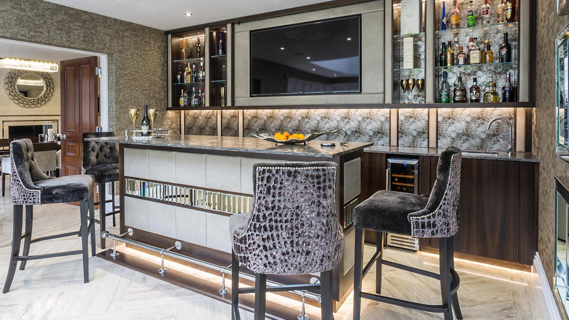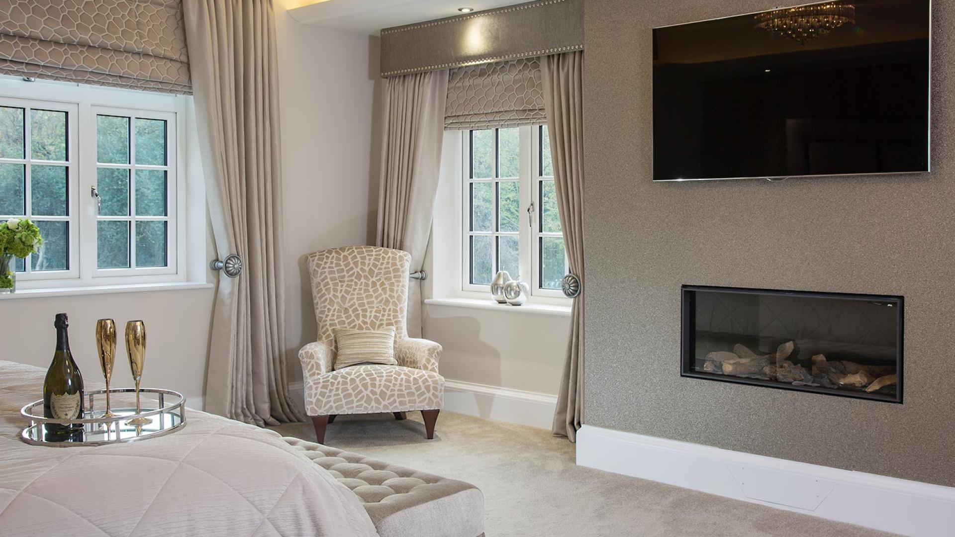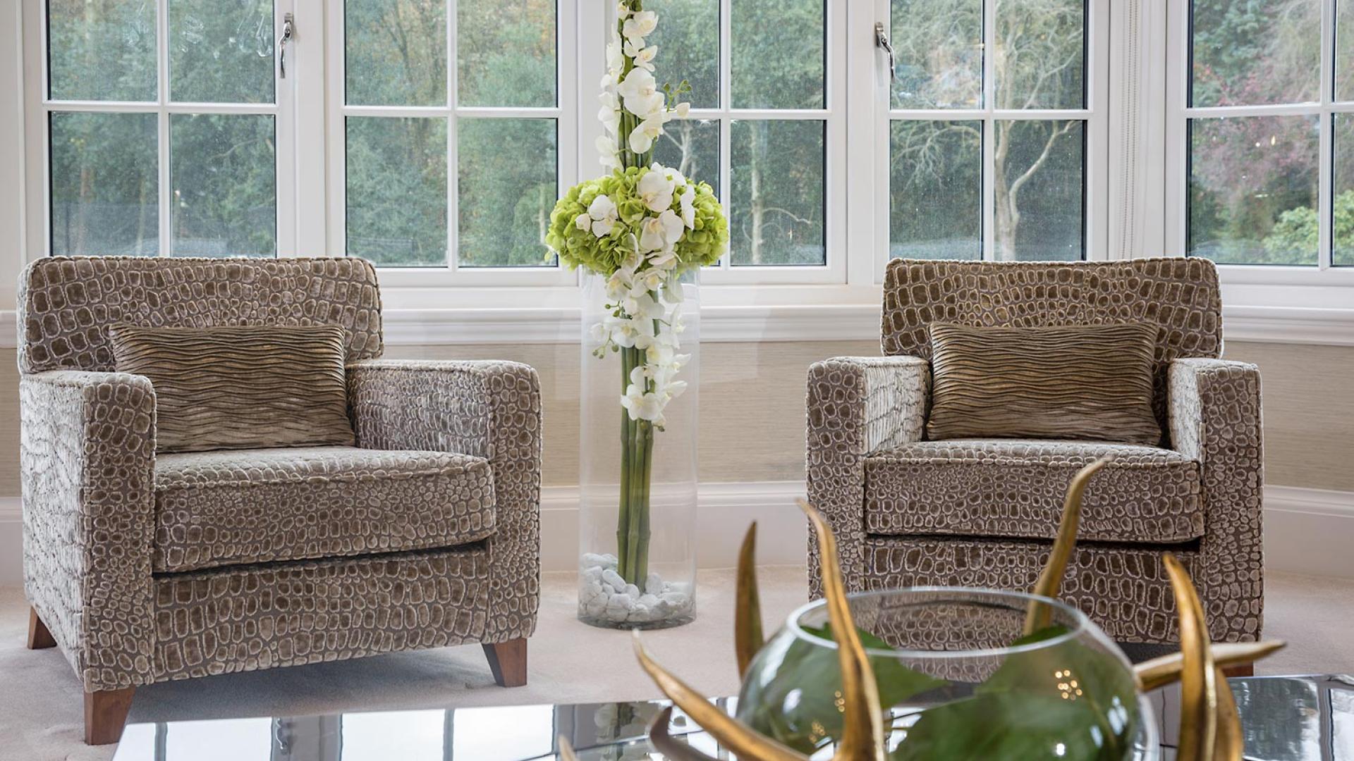The project was implemented across a number of phases and included a set of stunning chandeliers, with the largest taking centre stage in the galleried landing. We gave each of the 5 bedrooms its own personality, from the relaxing suite for guests to enjoy, to a princess-inspired bedroom for the youngest member of the family. We are particularly proud of the bespoke joinery designed and fitted in the Master Dressing Room and Orangery, which both include exquisite mirror inlay detailing and beautiful fabric panelling.