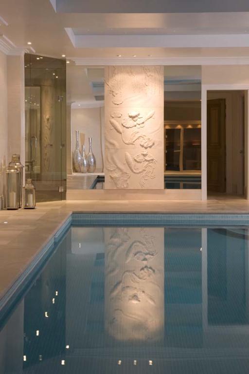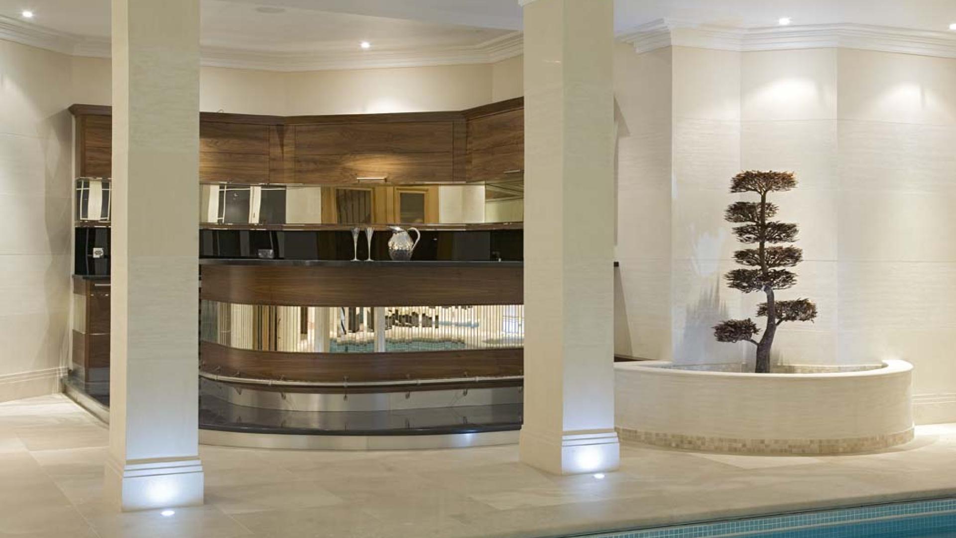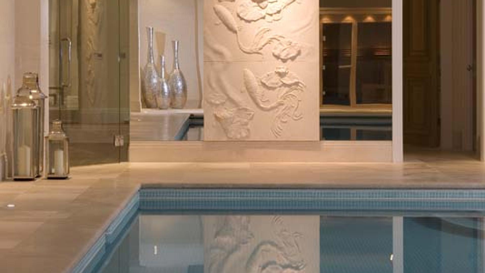 The swimming pool area is a highlight of the project. The coy resin sculpture that is a central feature of the space, was hand drawn and designed by our senior designer and provides the owner with a unique and personalised interior. The project included a large proportion of bespoke joinery, which was designed in house and installed by experience artisans.
